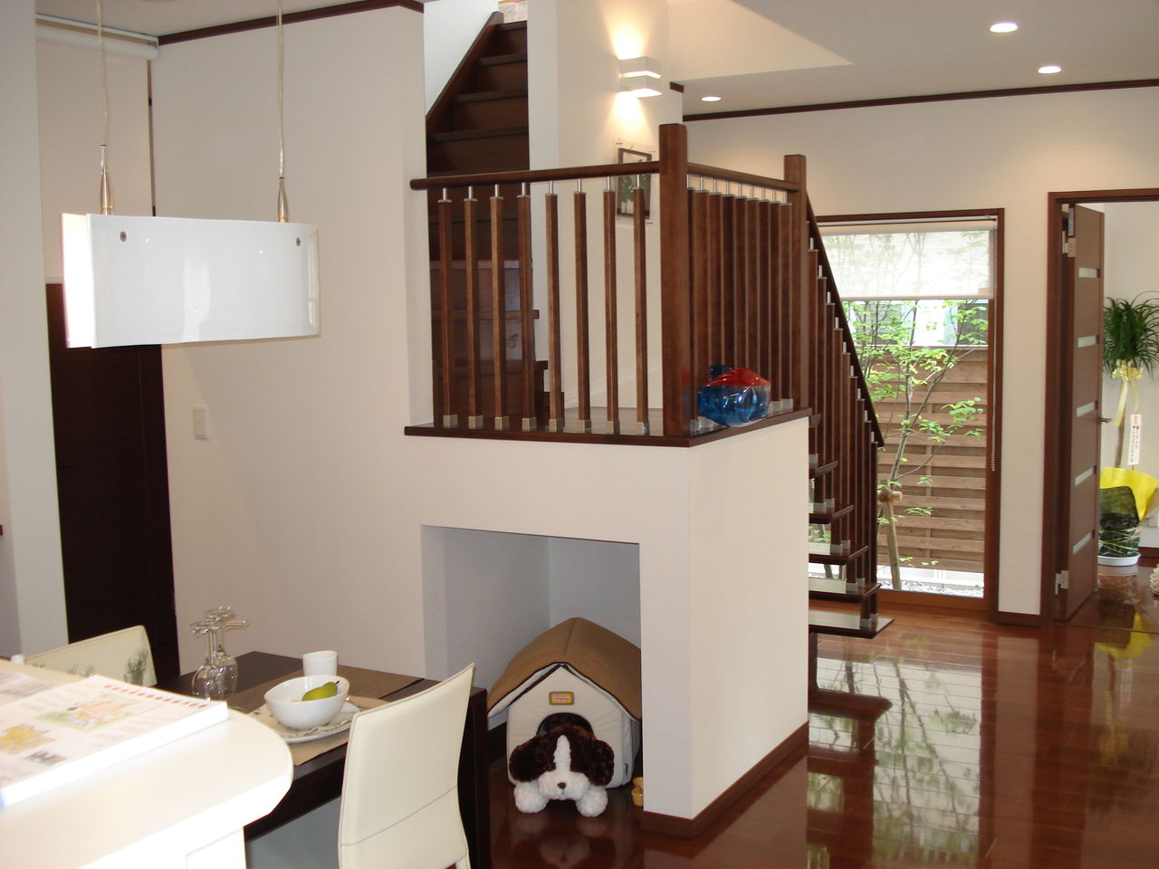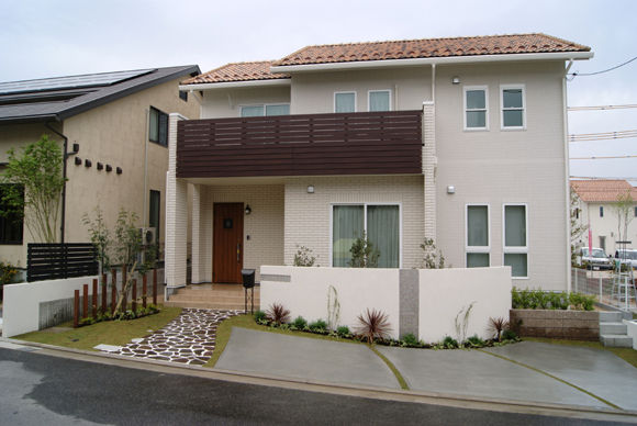 1階の一部はロイヤルメキシタイルという厚みのあるタイルで貼り分け。