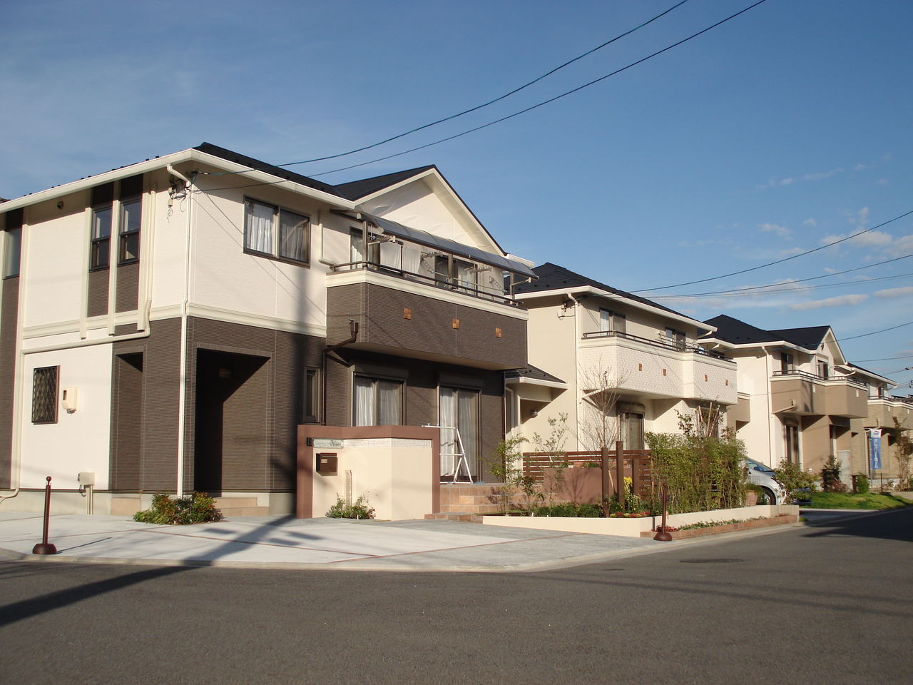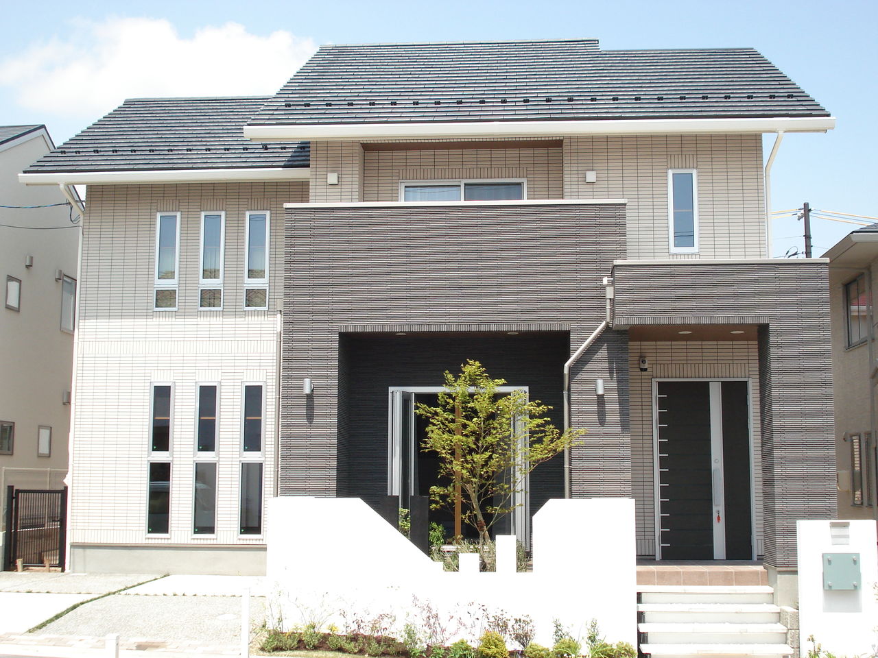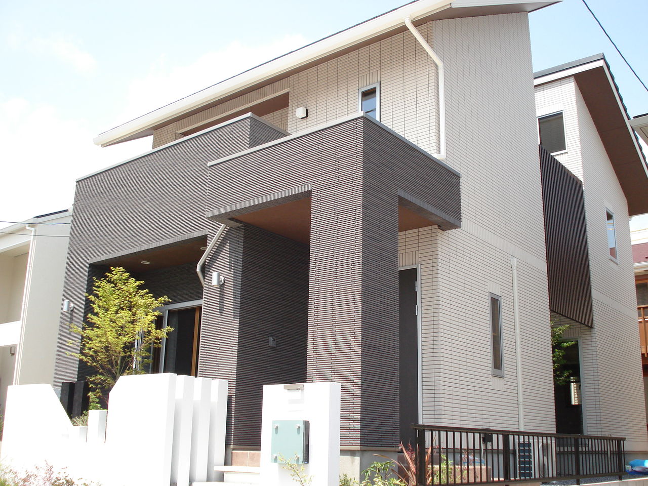 高級感あるスクラッチブリックタイルは周囲の家の外壁と圧倒的な差を感じさせます。