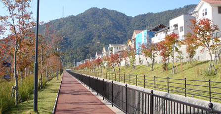 これら含む『春日野』の計画が国土交通省に認められ、優良な宅地開発の促進を図る制度“優良計画開発事業”に認定されています。認定基準として、公共施設用地が開発区域の4分の1以上、居住居宅地は170㎡(約51坪)以上、公園や緑地・広場が十分に確保されているなど、様々な基準をクリアし広島県で初めての認定が実現しました。