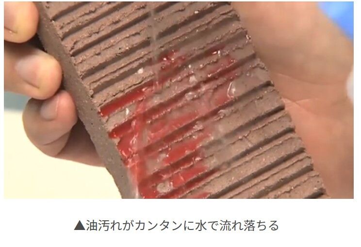 また、外壁タイルについた汚れが水でカンタンに洗い流せるメンテナンス性と、釘でこすってもキズがつかない耐久性について、簡単な実験を通して実証いただきました。