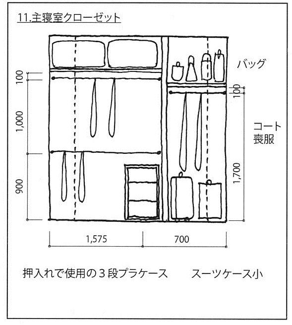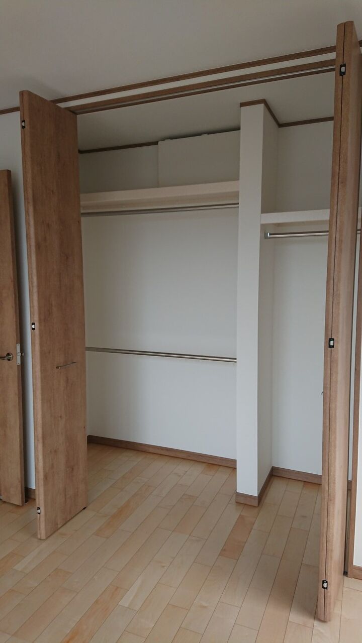 クローゼットは洋服の量を考慮してハンガーパイプは左は2段にし、