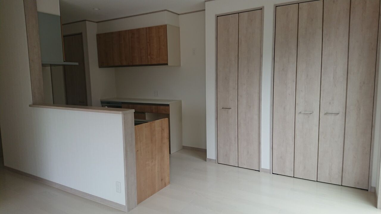 ダイニングの収納、左側はパントリーとして食品のストック等の収納、