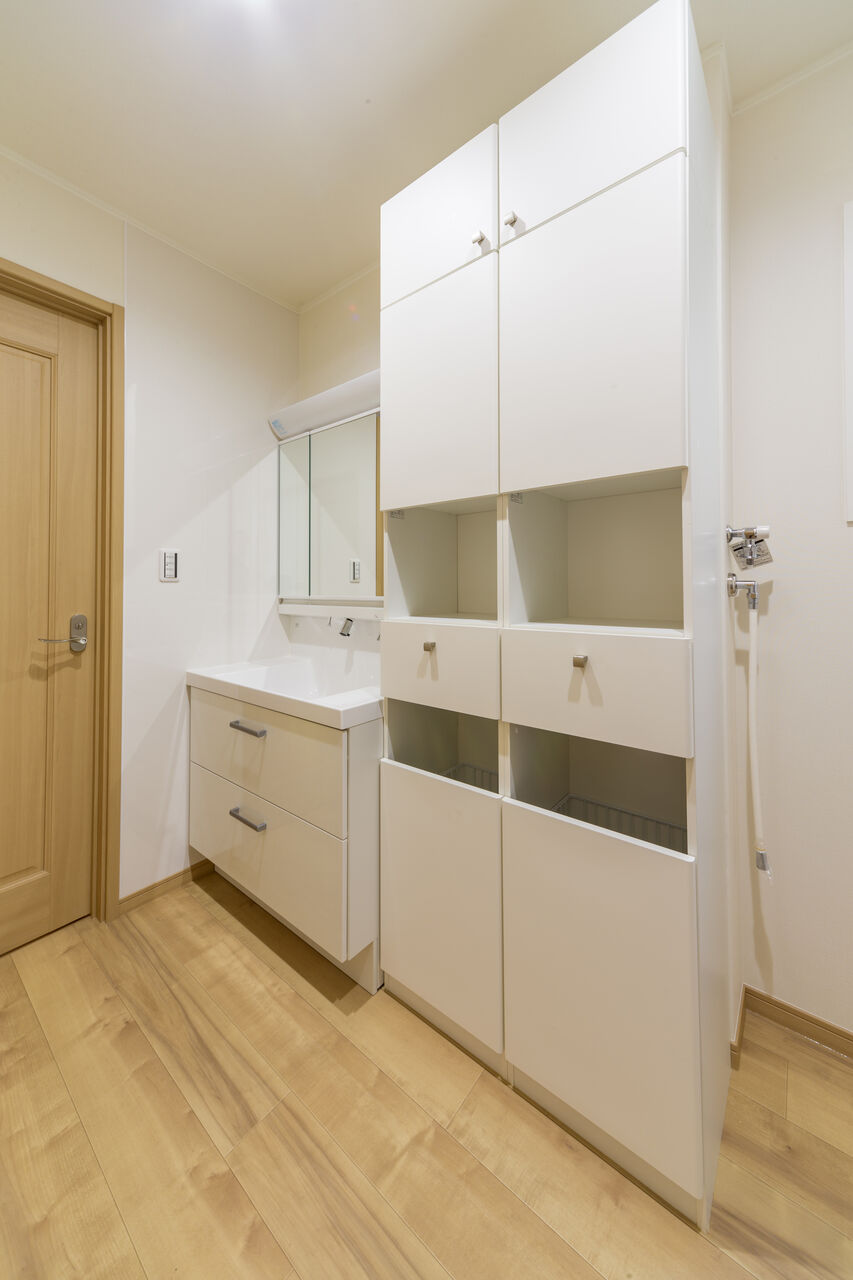 洗面脱衣室のタオル・下着・洗剤の収納は