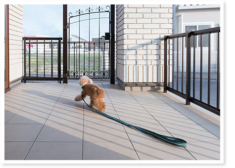 万が一、ワンちゃんが脱走しそうになっても、道路への飛び出しを防ぐフェンスを設置。事故を未然に防ぎます。