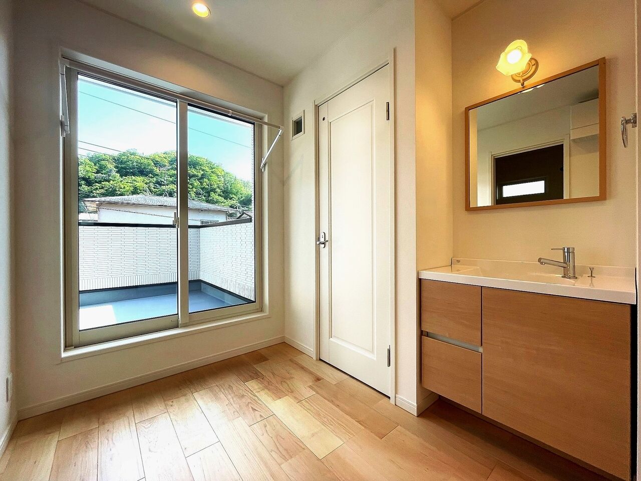 サニタリー内は室内干しも可能で、階段ホールへの動線があるため乾いた洗濯物を配るのもスムーズです。